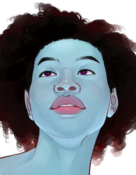 Uruâs palm stops at the end of the white lek, its color that of stars and a portender of bad luck, of inevitable doom handed to him before he was even more.That would technically make it his parentsâ fault, not his, but nobody in the colony would dare even whisper such a thought. Urudycksâ father would find out. And he would have recompense.Bile crawls up Uruâs throat, but he chases it down, forcing his hand off his white lek as though it had burned him.Shuffling quickly along the edge of his familyâs compound, Urudyck is careful not to let his heels crunch to loudly on the dead leaves the litter the ground. His veil shuffles around his shoulders and he wants nothing more than the rip the thing off, to subject it to the same fate faced by the end of his white lek--but at the same time, the mere idea of pulling it off in the open air makes him nervous.Thereâs hardly any light this far into the back of the compound, where various sheds stand against the back wall. As much as his father preferred and pursued perfection, he either did not know about or had nothing to say about the old, lopsided shed shoved off into the corner. He didnât know about the hole in the side of the shed that was just the perfect size for a teenaged pariah to slip through, veil and all.The shed doesnât smell like smoke. It smells like dust and old wood, like oil spilled from a broke maintenance machine somewhere outside his field of vision. A hole near the ceiling lets in some slivers of sharp moonlight, but otherwise it is dark. Enclosed like this, Urudyck feels safe enough to pull off his veil, tight fisted in one hand.He waits.In two short minutes, grunting and scraping can be heard from the opposite side of the shed that Uru came in through. A set of powderly blue montrals pokes into the small building from somewhere near the ground, then arms, then more grunting and swearing before a full figure comes into dim view. Locks, covered in dirt but looking quite proud of himself, carefully steps over discarded tools and machinery to get to Urudyck. He was getting broad in the shoulders and forming shorter, thicker lekku that made it all the more difficult to get into their secret hiding place.Uru has the impulse to hide the veil behind his back, but Locks already knows about it, of course--everyone in the colony does.âHi,â Locks breathes, his eyes already crinkling with a smile.They do what they always do: nestle into the space between two massive tools, arms and shoulders and legs and calves touching and generating heat between them. They talked--rather, Locks spoke and Uru listened. Uru was rarely asked to speak in his own home and so has difficulty managing more than a few words at a time. He thinks he might have dedicated more of the words in his life to prayer and apology than real conversation.âAre you alright?â Locks asks suddenly, the softness of his question jerking Uru back to the present.âFine,â he says hastily. The veil, wrapped tightly around his knuckles, cuts circulation off from his fingers. Looking at it fills Uru with a sudden burning rage, one that constricts his chest until he feels heâll crack. HIs fang dips into his lower lip, drawing forth pain that normally breaks Uru out of these sudden rushes of adrenaline and hatred.It doesnât work. The veil gets so tight Uru stops feeling his fingers entirely--the awful fabric isnât choking his knuckles, itâs cinched his fatherâs neck, pulled taught against the jugular till all that can be heard are the pops of hard-fought air, as sluggish and desperate as cracks from a doused fire--Locks hand closes over Uruâs fist, once again dragging him back to the present. Uru canât breathe. Locks works his fingers into Uruâs fist until he relents, relaxing his grip--then locks pulls the veil away, tossing off to the side somewhere. Their fingers fit together.Warmth floods Uruâs hand, spreading from his fingertips up his arm through his chest, replacing the burn that had been there. Uru refuses to remove his eyes from their entwined hands--the blue against white, the way Locks hands are softer than anything heâs ever felt.The hitch in Locksâ breathing forces Uruâs eyes up--forces a new slam of his heart against his ribs.To Uruâs dismay, Locks breaks their hands apart, leaving it bereft and cold again. His palm comes to the left side of Uru's face, hovering just before making contact.Dread consumes him. âDonât,â Uru says. âYouâll get hurt.â Locks would be stained and then the only person in this entire colony who cared for him would be a pariah as well.